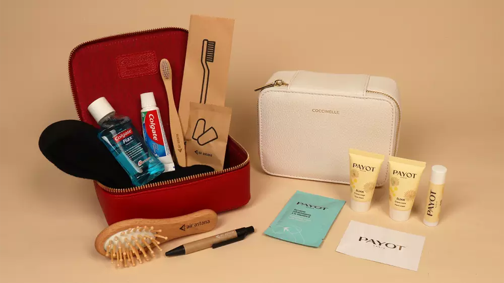 Этими дорожными наборами пассажиры могут воспользоваться как на борту, так и забрать их с собой, что станет приятным напоминанием о путешествии. В новой линейке дорожных наборов для бизнес-класса представлены два известных бренда: SAMSONITE — для мужчин и COCCINELLE — для женщин. Специально разработанный комплект дорожных предметов выдается бесплатно на всех международных рейсах маршрутной сети Air Astana продолжительностью более трех часов.