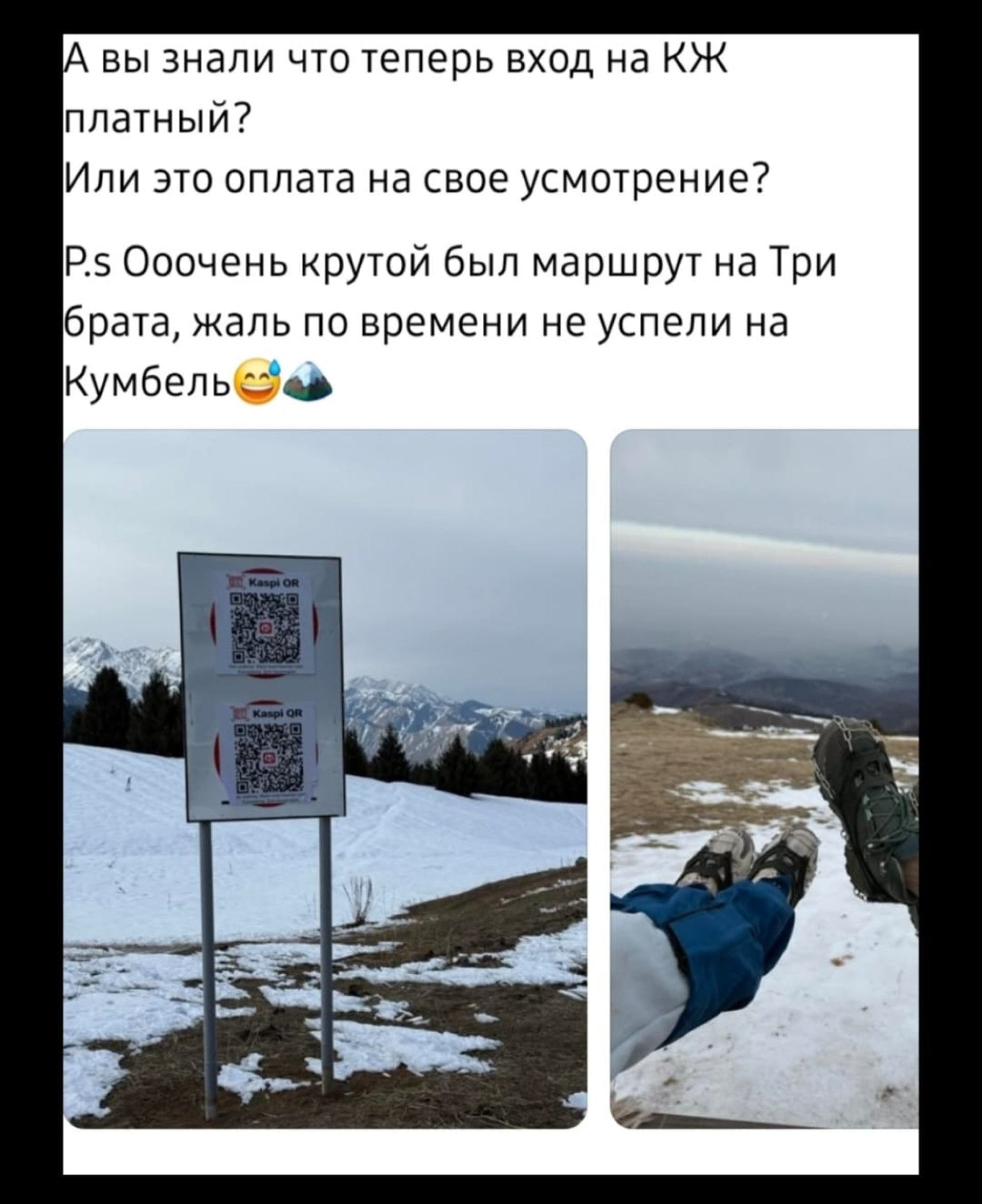 Автор поста в Threads сообщил, что на тропах Кок-Жайляу появились QR-коды, предлагающие оплатить посещение.