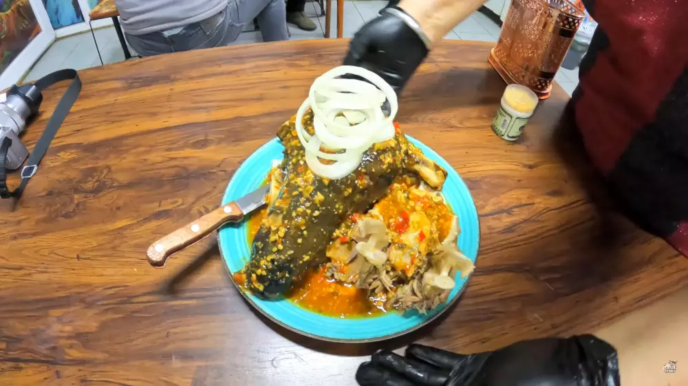 Федор делится нюансами употребления этого блюда, подчеркивая, что едят баранью голову в три этапа.