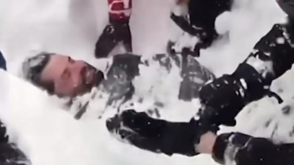 Неожиданно из-под снега ему машет рука человека. В конце концов ему удается выкопать лицо Стегера и услышать его глубокий вдох.
