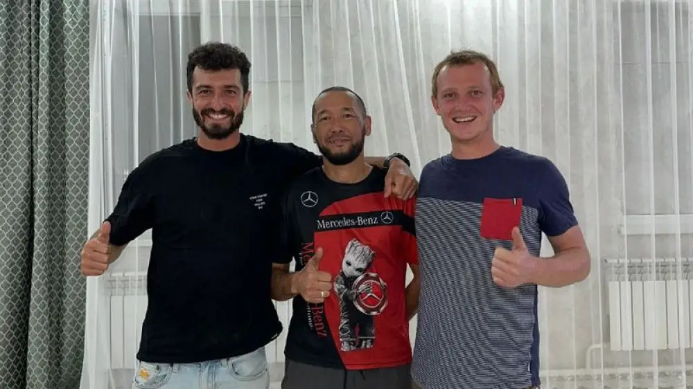 Выяснилось, путешественники два месяца назад выехали из родного Марселя в Японию. По дороге в страну восходящего солнца они оказались в Жанаозене, где искали деталь на мотоцикл. Так как город небольшой, нужной запчасти они не нашли.