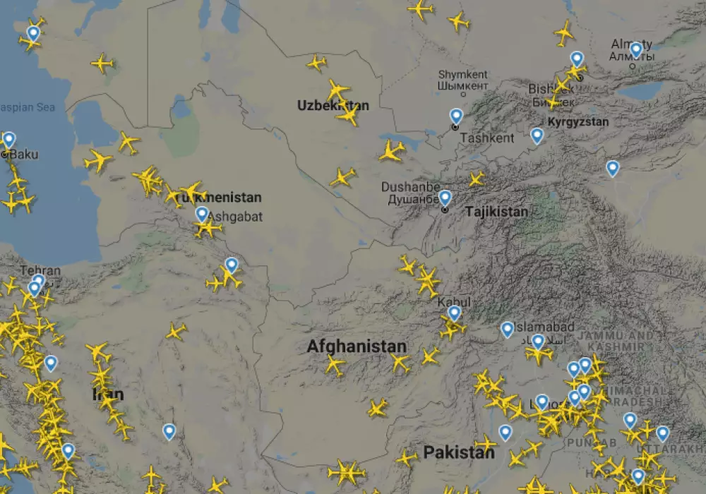 Казахстанская авиакомпания изменит маршрут из-за событий в Иране Скриншот с сайта Flightradar24.com