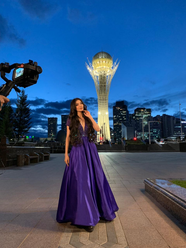 Особенно прекрасен Нур-Султан ночью, когда зажигаются все огни. Мы не упустили возможность снять ночную панораму с крыши одного из домов. Перед нами открылся фантастический вид на главные достопримечательности мегаполиса. Мадина предстала на этих съемках в элегантном платье от Sherri Hill и украсила собой кадры ночной столицы.