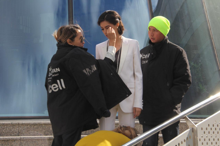 На девятый день съемок "Мисс Казахстан" произвела фурор среди иностранных туристов на Шымбулаке. Они восторгались ее красотой и нарядом и просили сделать совместные фото.