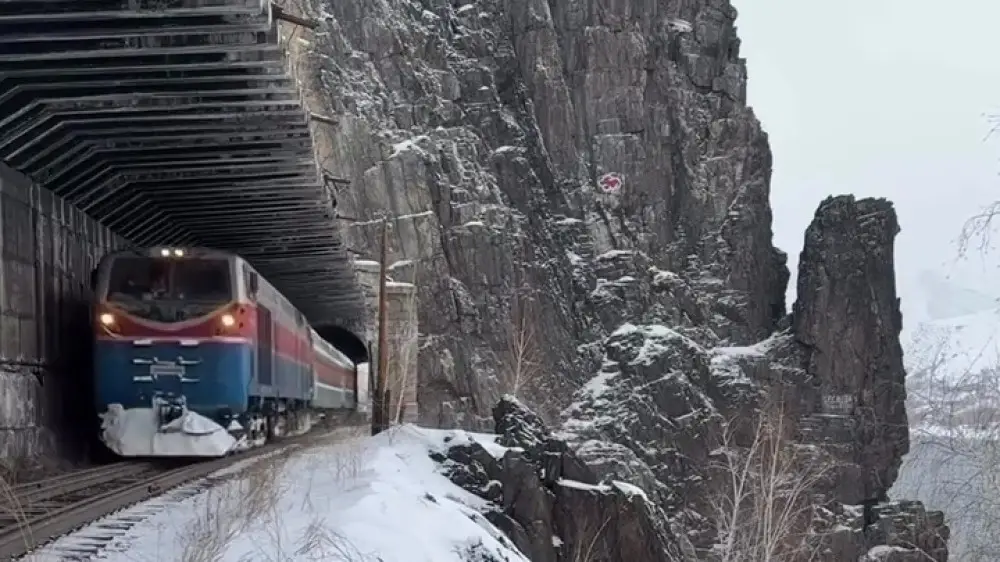 В соцсетях обсуждают ролик казахстанца Руслана, снятый в Восточно-Казахстанской области. На кадрах поезд проходит через туннель в скале, пробитый прямо в горном массиве. Многим локация напомнила альпийские железные дороги.