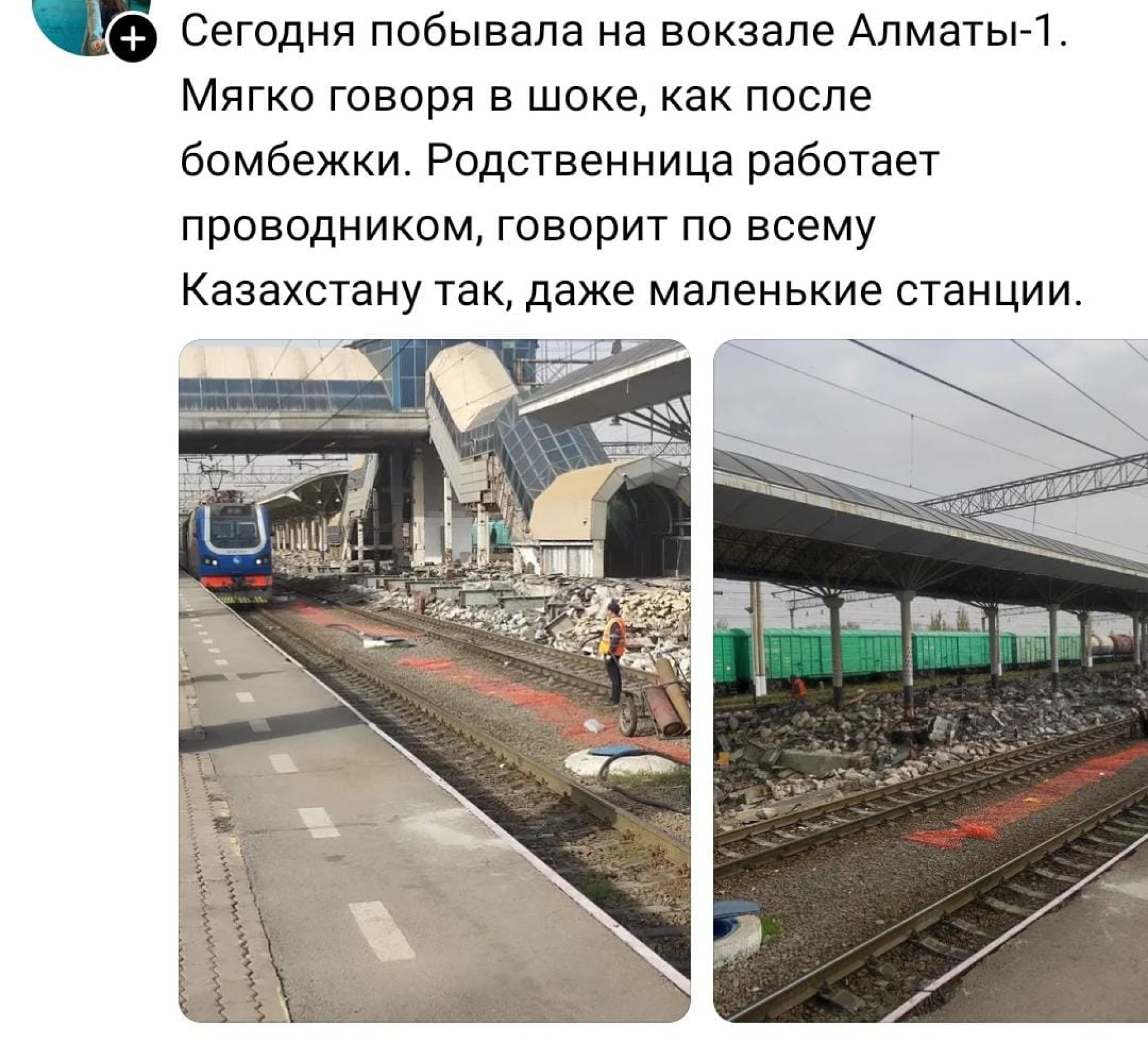 "Мягко говоря, в шоке, как после бомбежки. Родственница работает проводником, говорит, по всему Казахстану так, даже маленькие станции", - отметила она.