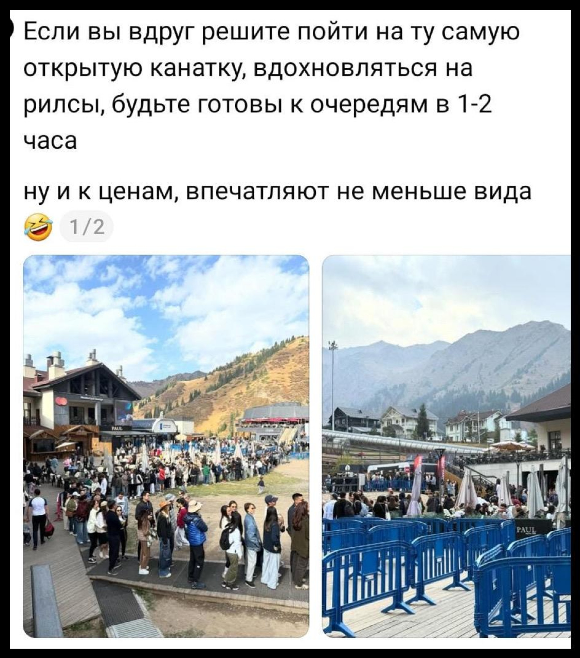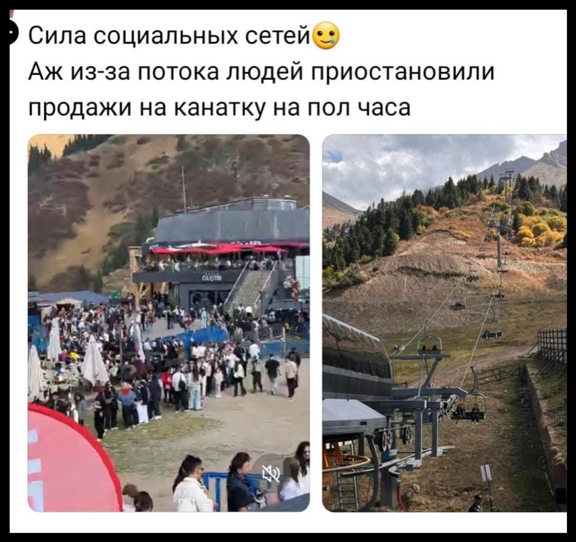 На этой неделе в соцсетях завирусилось несколько видео с осеннего Шымбулака. В результате тысячи желающих отправились на курорт, чтобы прокатиться на канатной дороге и повторить атмосферные кадры, передаёт Tengri Travel.