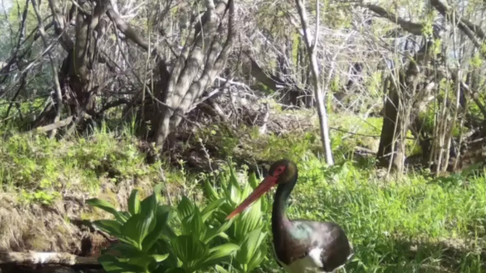 На фото и видео можно заметить птицу, отдыхающую возле речки Топольник (малый приток озера Маркаколь). Сотрудники заповедника отмечают, что черные аисты обычно прилетают сюда весной, в середине апреля - начале мая. "Поздние мигранты" наблюдаются вплоть до начала июня. Осенняя миграция у большинства птиц начинается в конце августа - начале сентября.