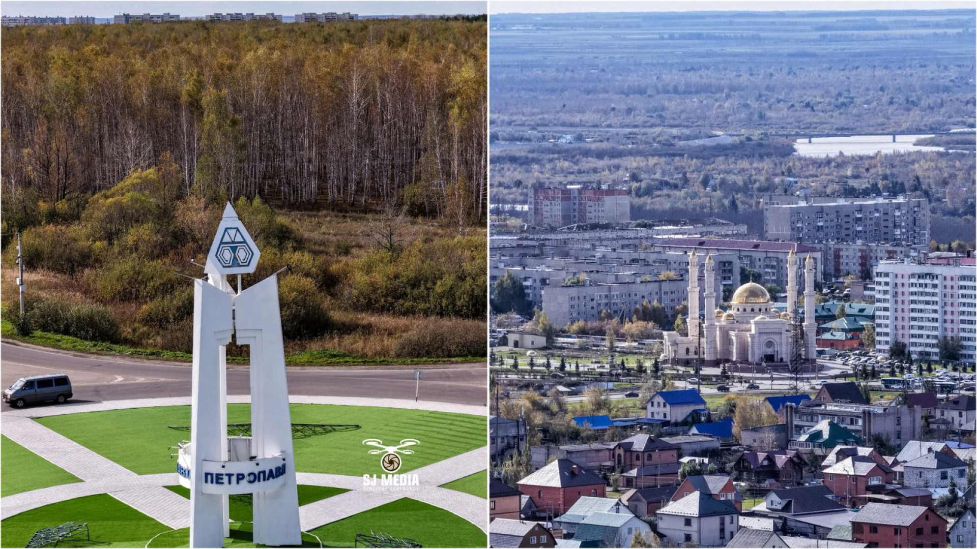В черте Петропавловска расположено множество парков и скверов, отмечает видеограф. Через город протекает река Есіл, а неподалёку находится озеро Пёстрое.