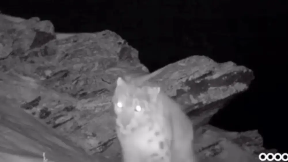 Комитет лесного хозяйства и животного мира опубликовал ролик на своей странице в Instagram. Снежный барс попал в объектив фотоловушки.