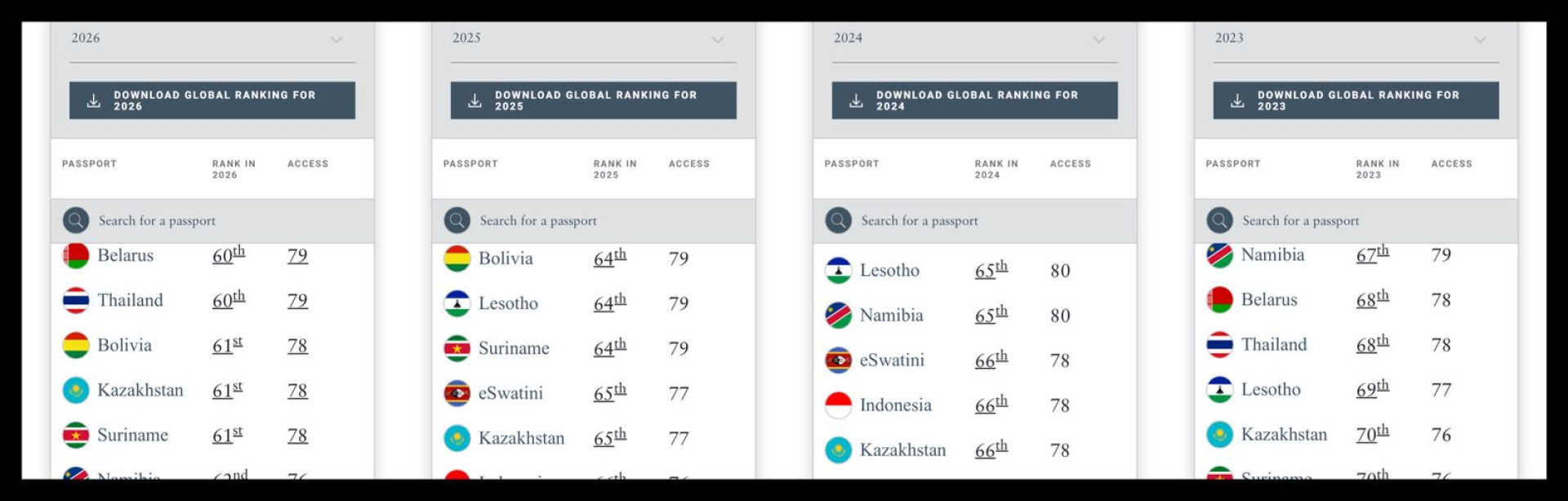 К слову, рейтинг Казахстана менялся дважды в прошлом году: в июле 2025 года страна занимала 63-е место, а в октябре — 67-е.