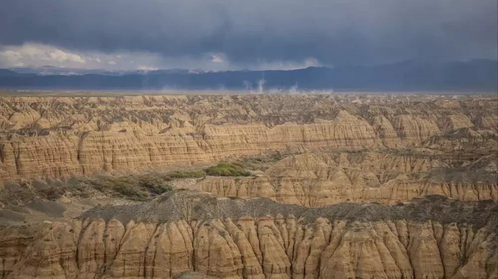 Желтый каньон называют также долиной Узынбулак или Долиной юрт. Он представляет собой глиняные скалы причудливых форм, образовавшиеся в результате действия ветровой и водной эрозии. Каньон называют Лунным из-за сходства с ландшафтом Луны.