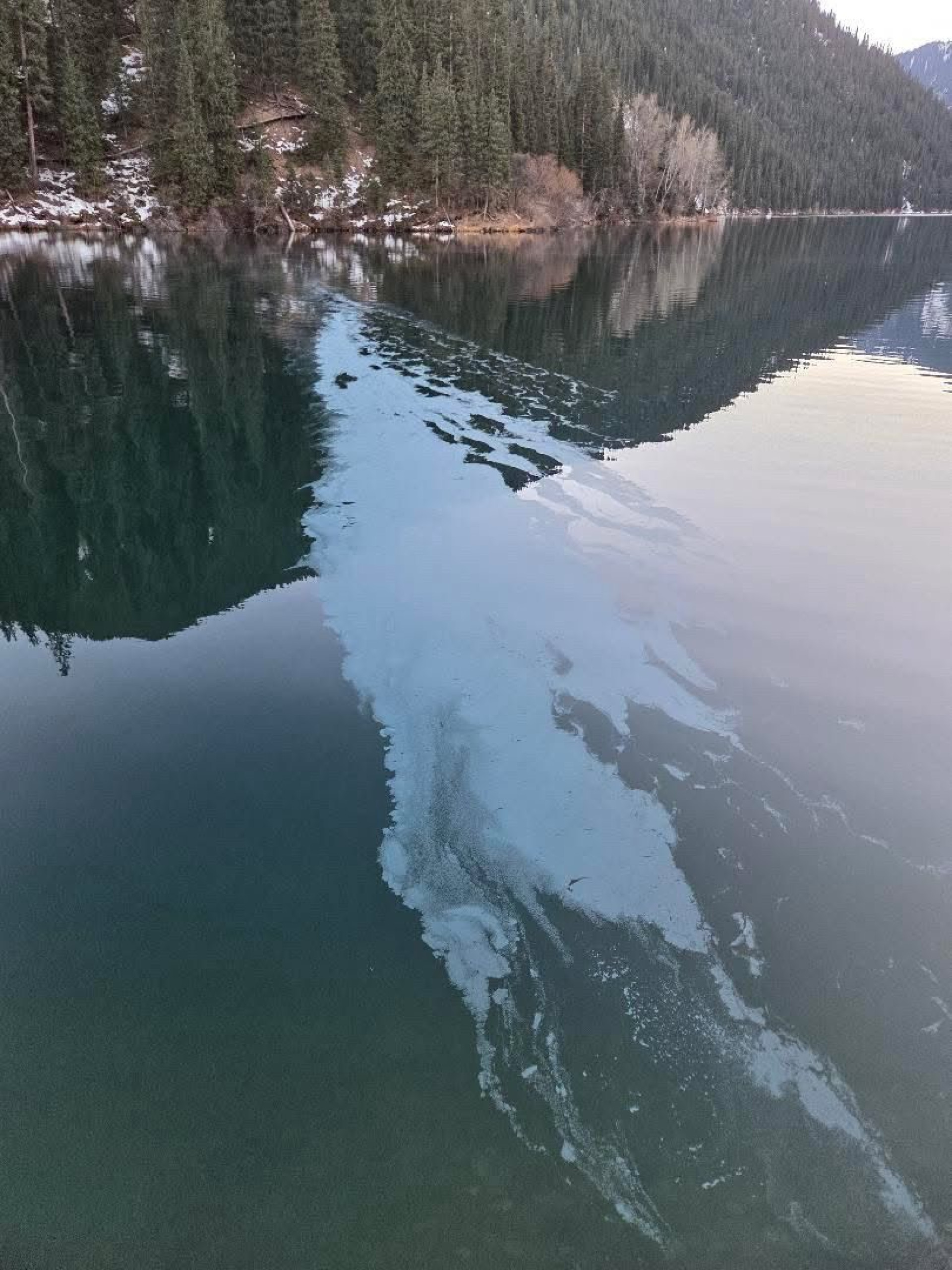 "Сегодня на Кольсае кто-то устроил гендер-пати, вылили краску прямо в озеро. Она до сих пор плавает на поверхности, не рассасывается. Они же такой вред нанесли озеру, это просто кошмар!", — рассказал читатель.