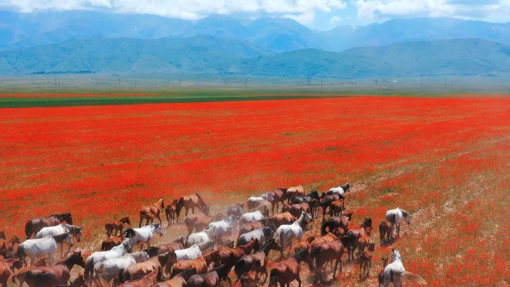 Адилет Рахметолла - блогер, видеограф. Он путешествует по всему Казахстану, снимает на видео красивые кадры с дрона и выкладывает на своей странице. В одном из роликов парень снял чабана на коне, скачущего по маковому полю у подножия гор. Голубое небо, красное поле, зеленая трава и пасущиеся бараны с высоты птичьего полета сошлись в потрясающую картину.