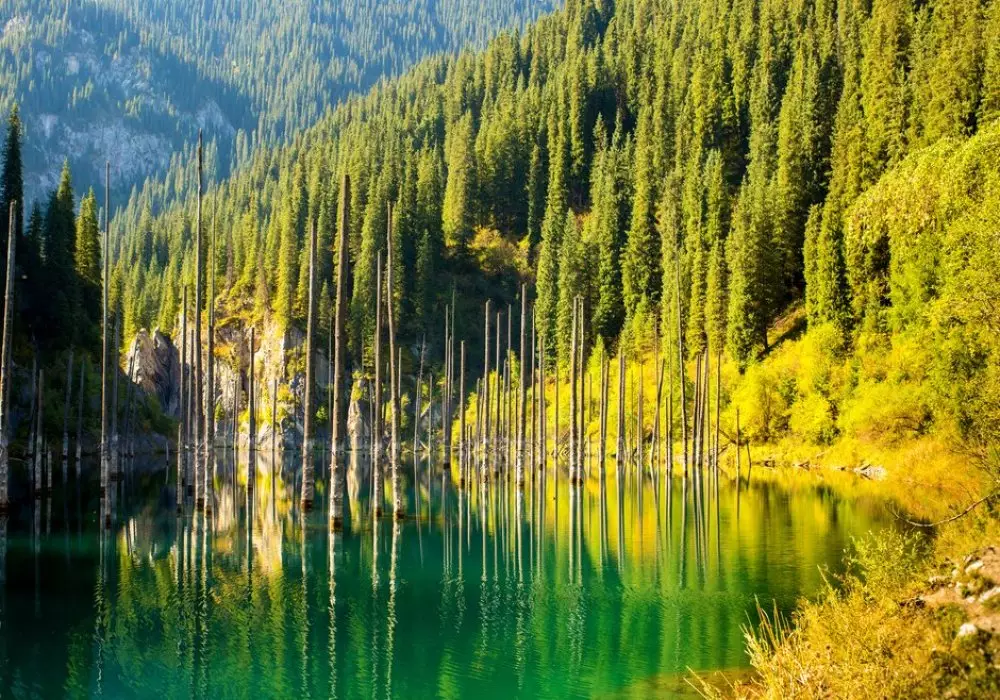 Сказочное и невероятное по своей красоте озеро Каинды притягивает своими загадочными видами. Оно затерялось в хвойном лесу на высоте 2 000 метров над уровнем моря, посреди гор Кунгей-Алатау. Свое название озеро получило благодаря березовой роще, расположенной в пяти километрах от него.
