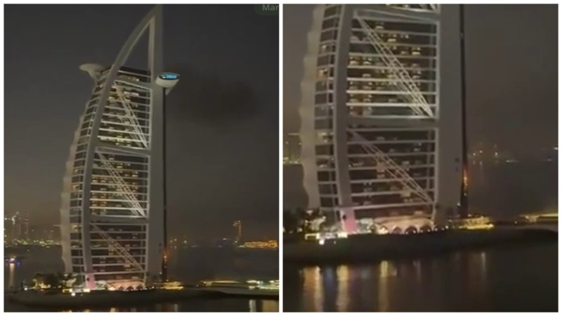 Иранские СМИ публикуют видео атаки дрона на отель Бурдж-аль-Араб в Дубае. Там начался пожар, передаёт Tengrinews.kz.