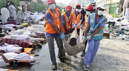 В Иране заявляют об увеличении числа жертв давки близ Мекки до двух тысяч человек Спасатели на месте смертельной давки в Мекке. Фото ©Reuters.