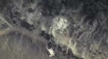 Минобороны РФ опубликовало видео ударов по штабу ИГ (ДАИШ) в Сирии Кадр из видео с сайта youtube.com
