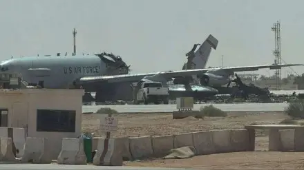 Иранские СМИ публикуют фотографии, как утверждается, американского самолёта дальнего радиолокационного обнаружения и управления E-3 AWACS. Воздушное судно получило критические повреждения в результате удара по авиабазе имени принца Султана в Саудовской Аравии, передаёт Tengrinews.kz.