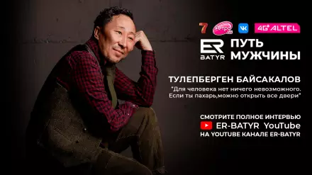 Новый гость проекта ER-BATYR - известный актер Толепберген Байсакалов. В беседе с ведущим Тимуром Балымбетовым он рассказал о своих впечатлениях от съемок в фильме "От" ("Огонь") и первой встрече с его режиссером Айжан Касымбек, а также о том, почему долго не может находиться дома и за что благодарен судьбе. Cмотрите новый выпуск проекта на YouTube-канале ER-BATYR. Партнер проекта - мобильный оператор Altel.