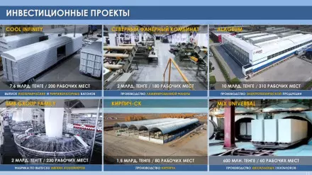 В сфере промышленности портфель заказов заводов вырос с 44 до 56 миллиардов тенге. Завод по производству изотермических вагонов-термосов произвел 140 вагонов на 5 миллиардов тенге. Введенный в этом году фанерный комбинат произвел 11 тысяч кубов готовой продукции.