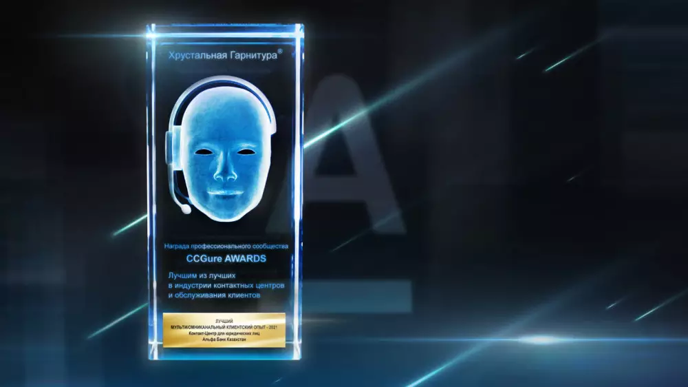 23 марта 2021 года при подведении итогов конкурса АО ДБ "Альфа-Банк" Казахстан вышел на большую сцену в Москве и получил награду - Хрустальную гарнитуру - в номинации "Лучший мульти/омниканальный клиентский опыт" в СНГ.