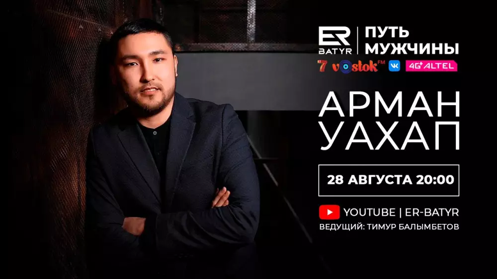 Новый гость проекта ER-BATYR - президент общественного фонда "Батыр боламын" Арман Уахап. В беседе с ведущим Тимуром Балымбетовым он расскажет о том, как возникла идея создания фонда, почему так важно, чтобы мужчины принимали активное участие в воспитании детей, а также о том, как важно для Казахстана появление большого числа мудрых и сознательных героев.