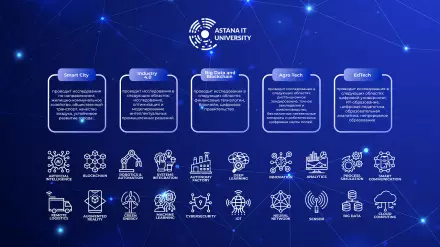 Сегодня AITU осуществляет исследования в IT-сфере по мультидисциплинарным направлениям: смарт-системы и технологии, цифровые двойники, EdTech, FinTech, AgroTech и энергетические системы. Проекты выполняются по программно-целевому и грантовому финансированию МОН РК, а также по хозрасчетным договорам с предприятиями.