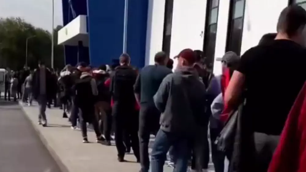 В соцсетях появилось видео большой очереди у одного из ЦОНов Алматы, которая состоит из граждан России, пришедших, чтобы получить ИИН.