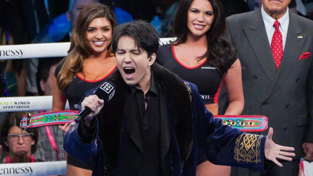 Перед началом поединка Димаш Кудайберген исполнил гимн Казахстана.