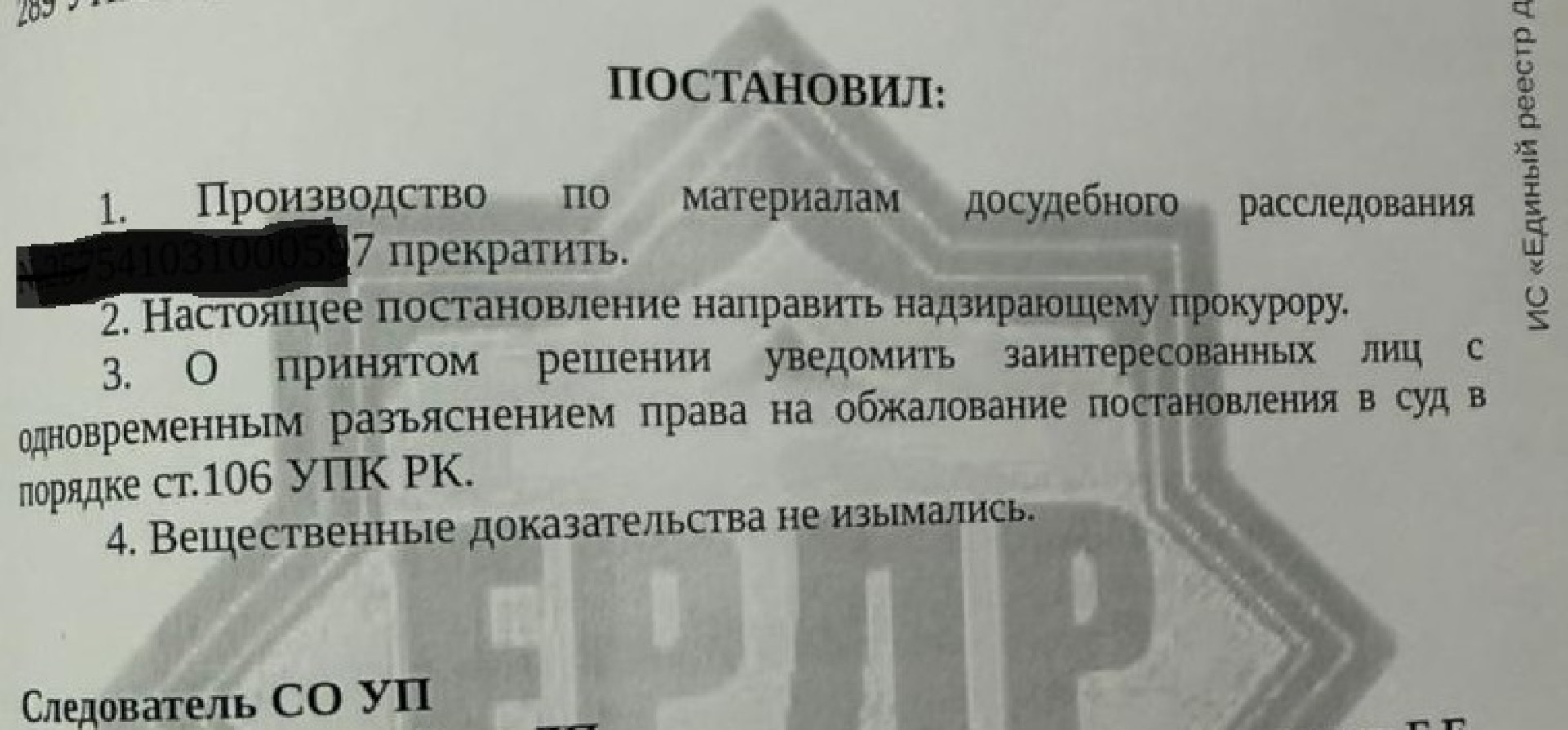 Фото: постановление о прекращении дела, предоставлено семьей мальчика