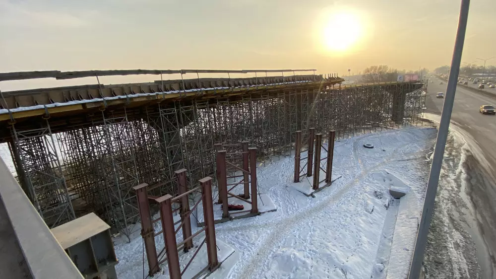 Также до конца не оборудовали надземный пешеходный переход около ЖК "Асыл Арман". Там нет крыши и подъемников для инвалидов.