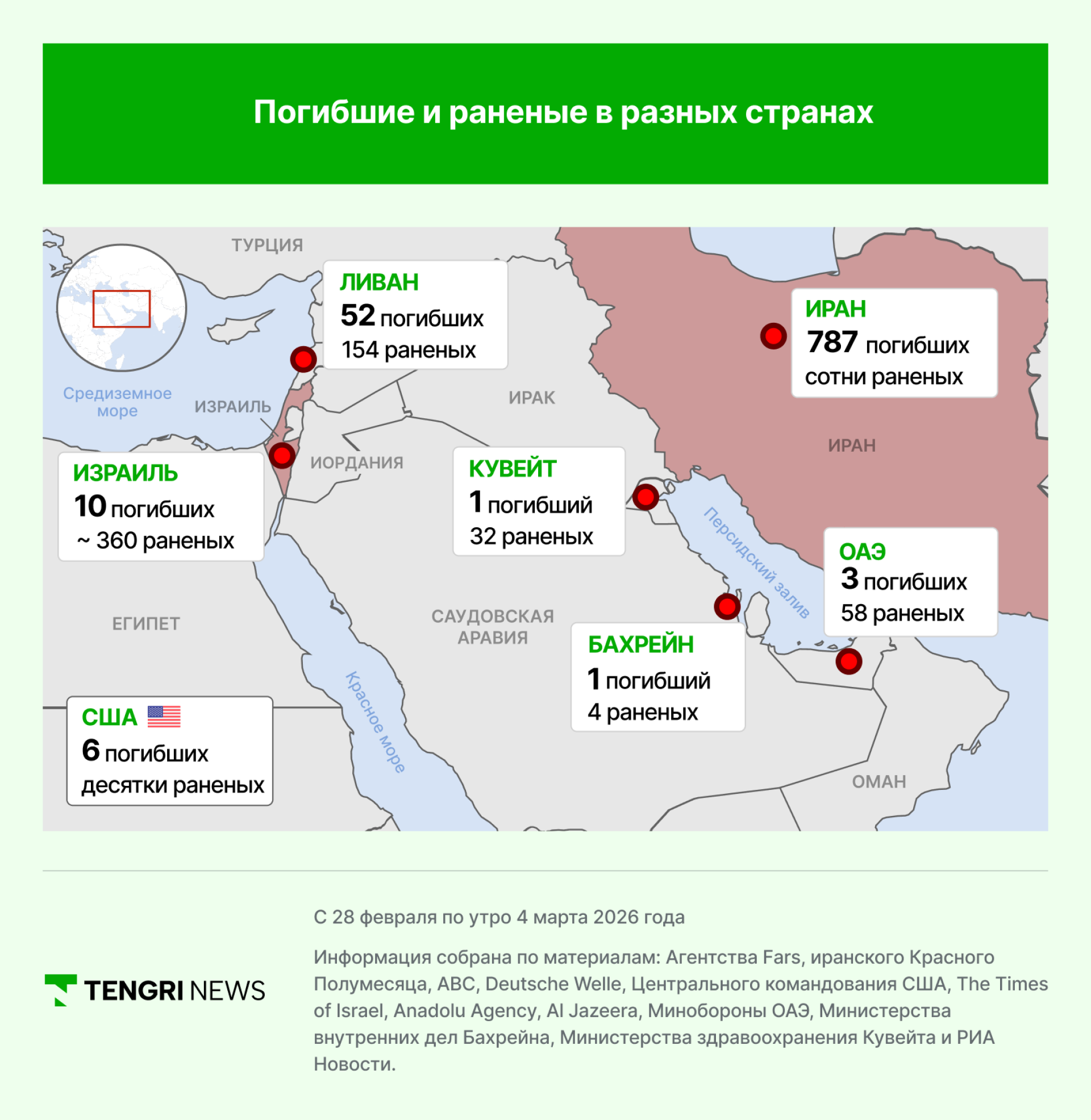 По состоянию на утро 4 марта данные о погибших и раненых оставались без изменений.