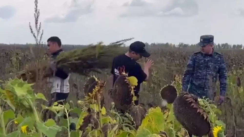 Коноплю выращивали среди подсолнухов в области Абай Кадр из видео.