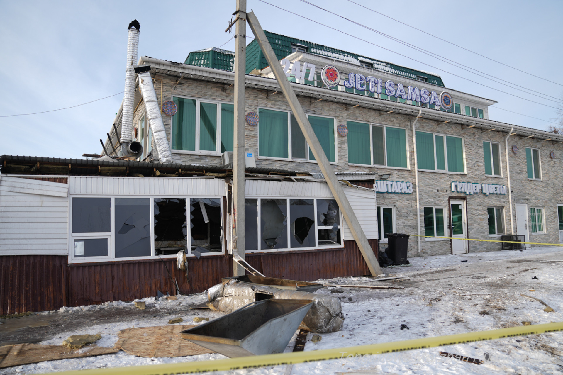 Корреспондент Tengrinews.kz приехала на место спустя несколько часов после ЧП, когда огонь уже потушили, а само здание осталось один на один с последствиями взрыва: без людей, без шума, без движения.
