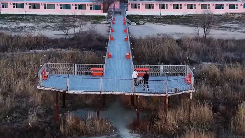 В объектив фотографа попал пирс на набережной 7-го микрорайона Актау, который за несколько последних лет потерял свое предназначение. С него больше нельзя нырять или ловить рыбу, закидывая удочку, потому что теперь сооружение, когда-то уходившее в море, оказалось полностью на суше, за десятки метров от воды.