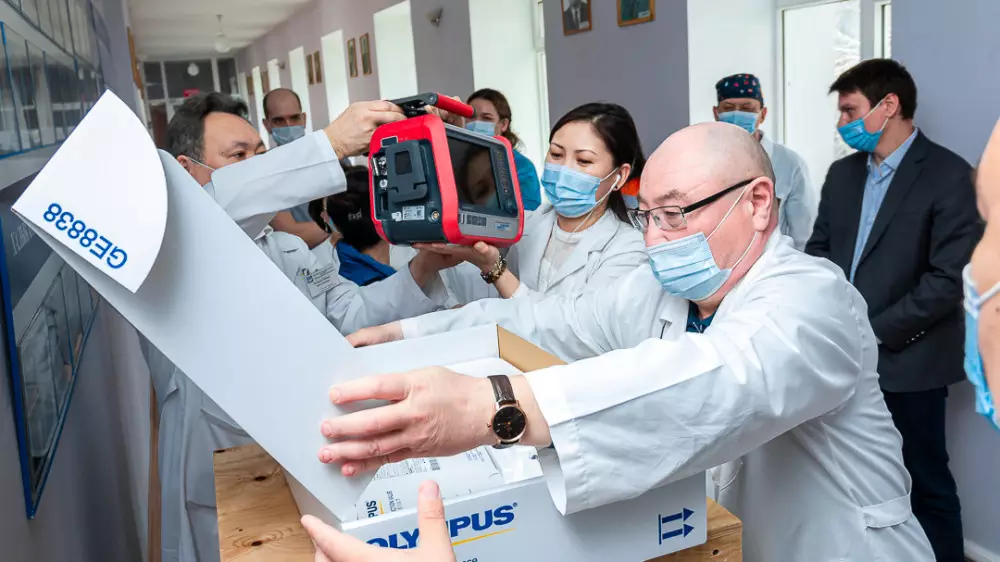 Национальный научный центр травматологии и ортопедии имени Батпенова получил в дар от холдинга комплект оборудования для лечения пациентов с коронавирусом. Это бронхоскоп (Olympus), аппарат ИВЛ Hamilton (Швейцария) и виброакустический аппарат, разработанный и производимый в столице.