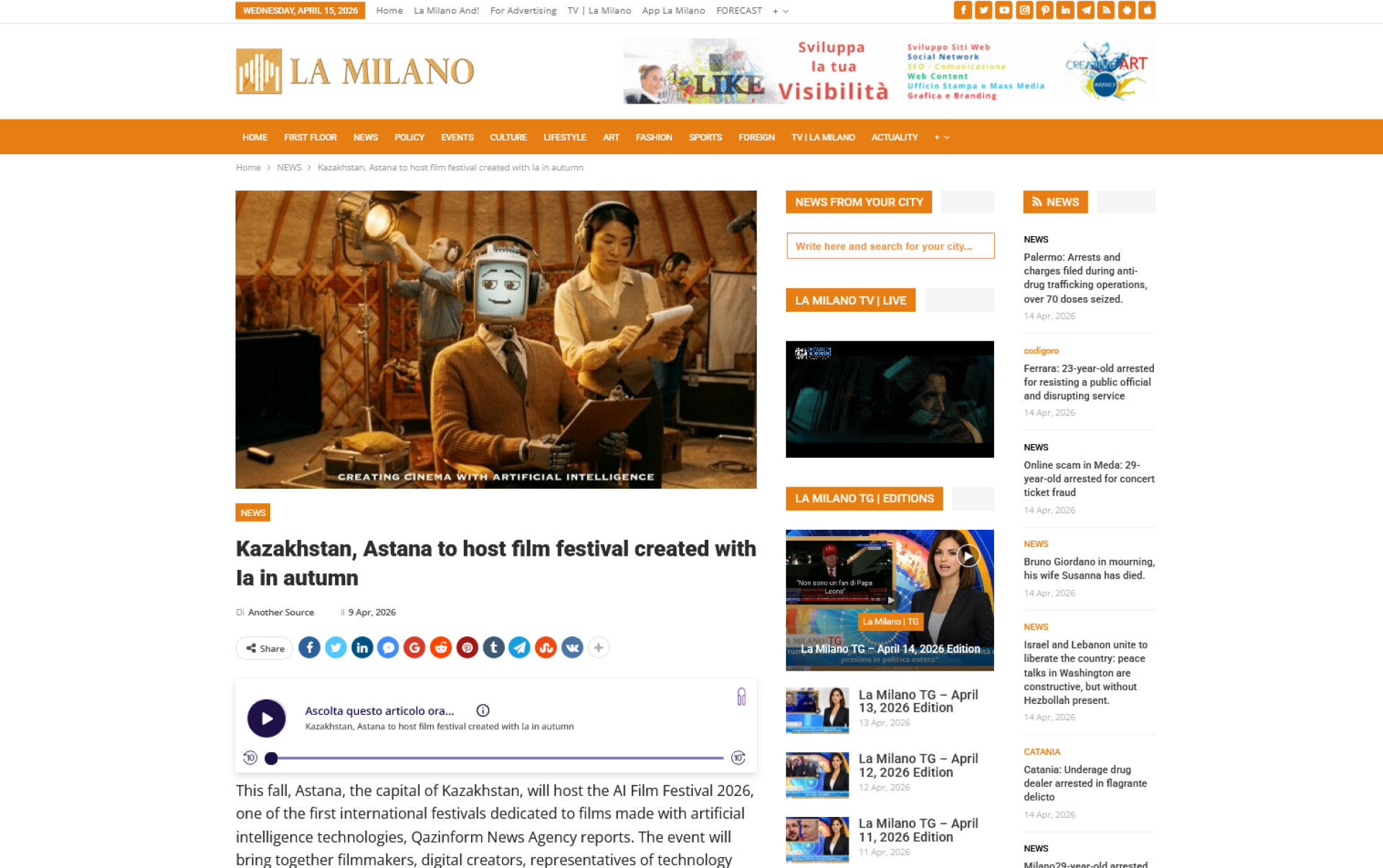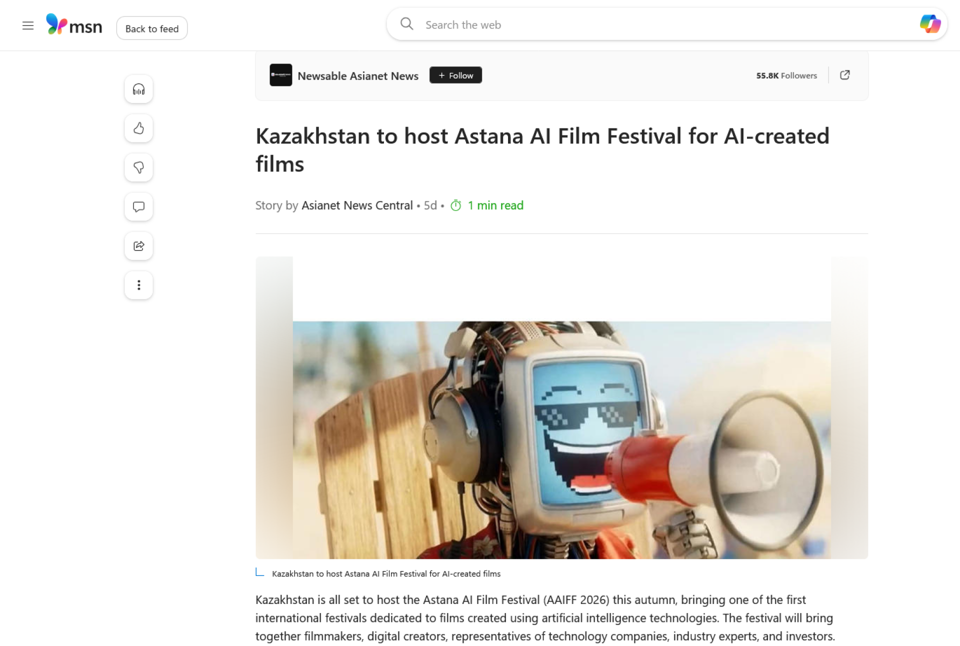 Сразу после анонса казахстанского фестиваля генеративного кино Astana AI Film Festival публикации о нем начали появляться в международных медиа, включая крупные новостные порталы и специализированные издания о технологиях и кино.
