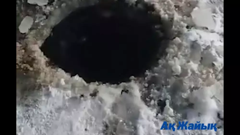 В соцсетях распространяется видео, снятое на Урале в райцентре Индерборский. На кадрах видно, что подо льдом образовалась черная жидкость непонятного происхождения.