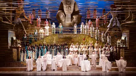В культовой постановке задействовано двести человек – солисты оперы, мужской и женский хор, артисты балета, оркестра, миманса и даже дети. Чтобы представить масштабы работы, подчеркивается, что количество обслуживающего персонала за сценой равно числу артистов. И еще одна впечатляющая цифра: в постановке используется 500 костюмов, они, как и декорации, – шедевр сценографии. Многоэтажные, массивные, многослойные, весом в 30 тонн, они - величественное украшение сцены, которые передают пышную красоту Египта периода царствования фараонов.