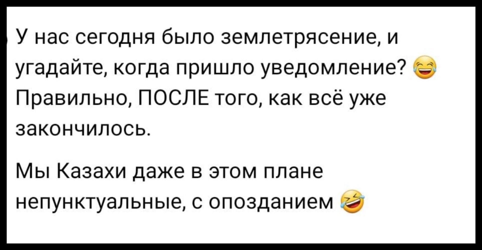 Тем временем интересный комментарий пришел из ДЧС Алматинской области - там жители тоже сегодня ощущали землетрясение. Оповещение некоторым также пришло с задержкой.