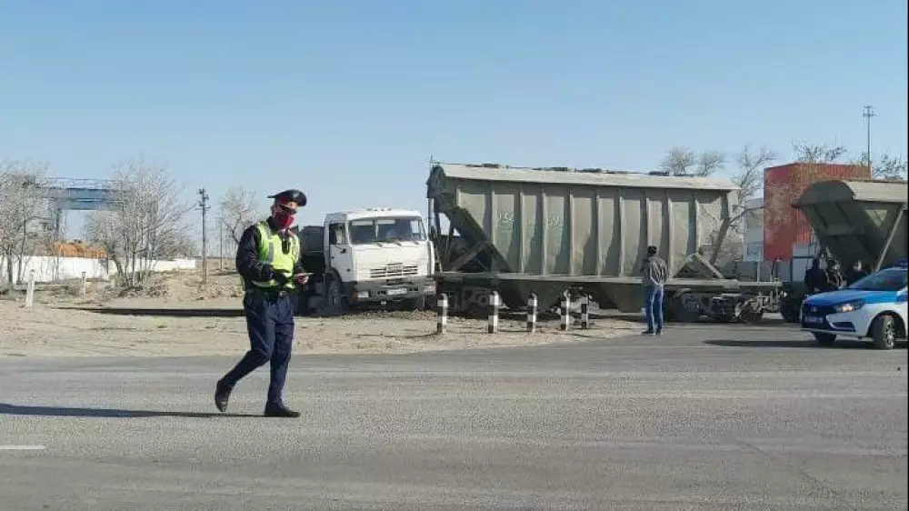 В Мангистауской области произошло ДТП с участием КамАЗа и товарного поезда, передает корреспондент Tengrinews.kz.