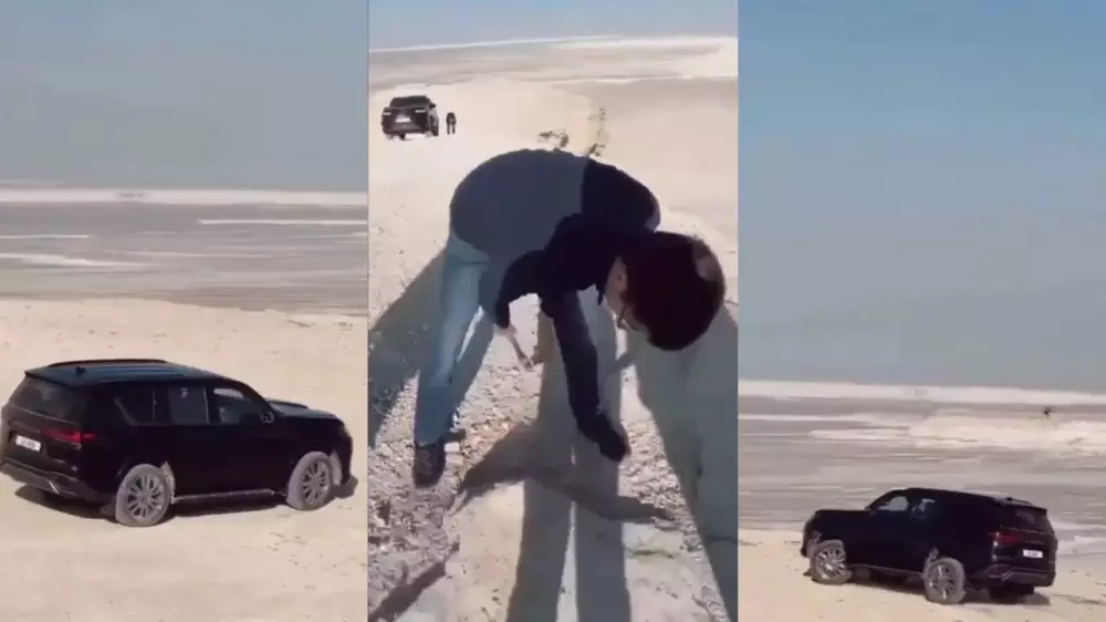 "16 мая 2022 года в сети появилось видео, где блогеры устроили тест-драйв нового внедорожника близ урочища Бозжыра. В данный момент личности организаторов и водителя установлены. За езду без государственных номеров на водителя составлен административный протокол по статье 590, части 2 КоАП РК", - сообщили в Департаменте полиции Мангистауской области.