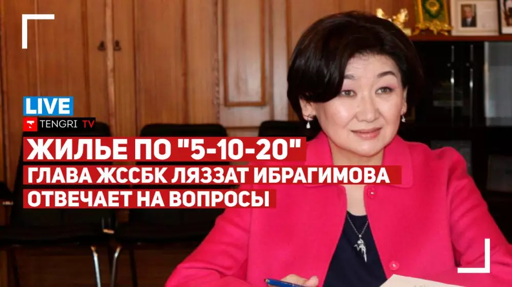 На вопросы в прямом эфире на YouТube-канале Tengri TV отвечает председатель правления "Жилстройбербанк Казахстана" (ЖССБK) Ляззат Ибрагимова.