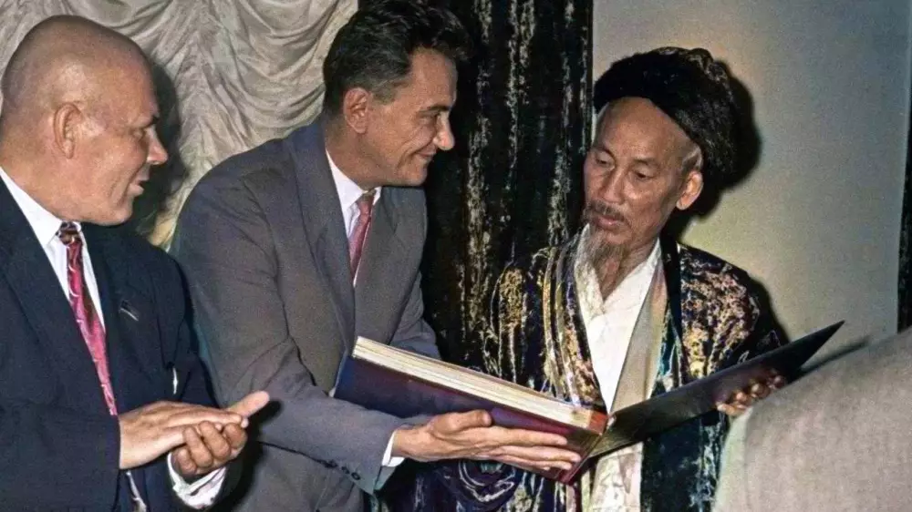 "1959 год. Алматы. Визит президента Вьетнама Хо Ши Мина в Казахстан. Памятные снимки со встречи с Динмухамедом Кунаевым и Канышем Сатпаевым", - написал пресс-секретарь Касым-Жомарта Токаева, разместив снимки со встречи.