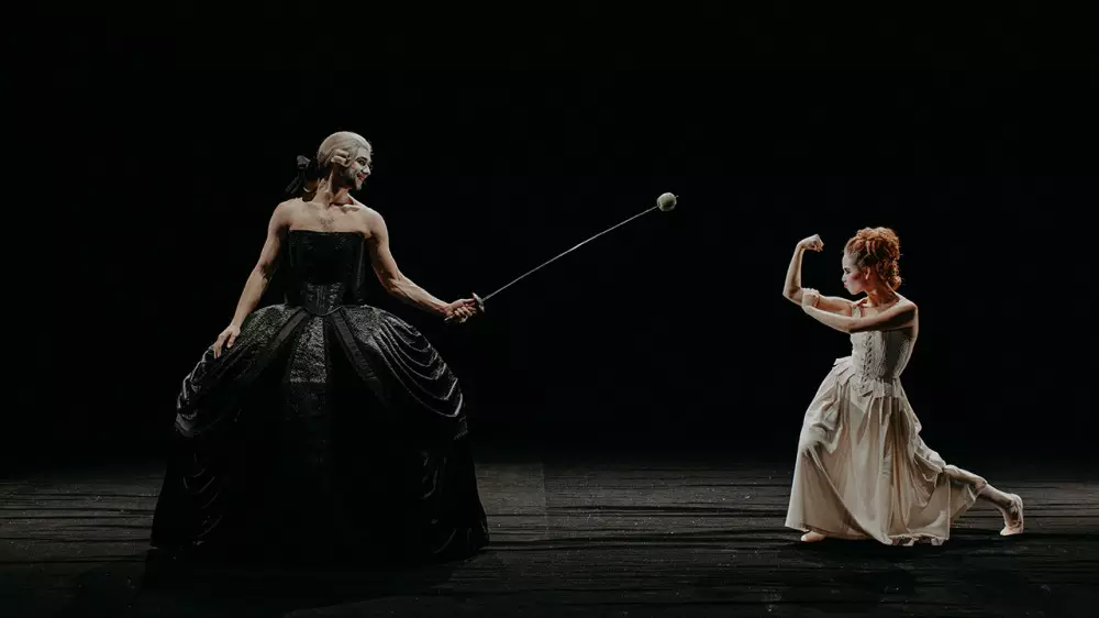 "Костюмы в абстрактном опусе гениального Иржи Килиана отсылают нас к эпохе галантного века. Где мужчины предстают в подштанниках и напудренных париках "бинет", а женщины в нижних юбках с корсетами и с взлохмаченными волосами. Их наряды пудровых и кремовых оттенков сливаются с тоном кожи", - пояснила художник-дизайнер по костюмам "Астана Опера" Дарига Тайшикова.