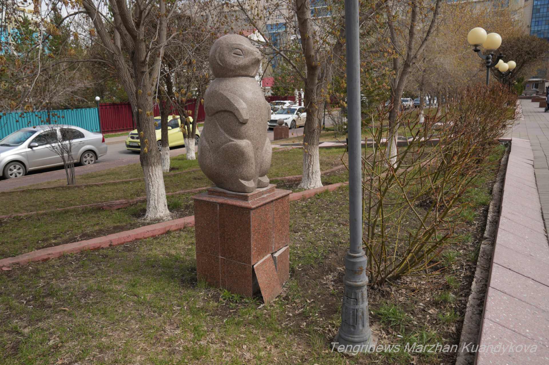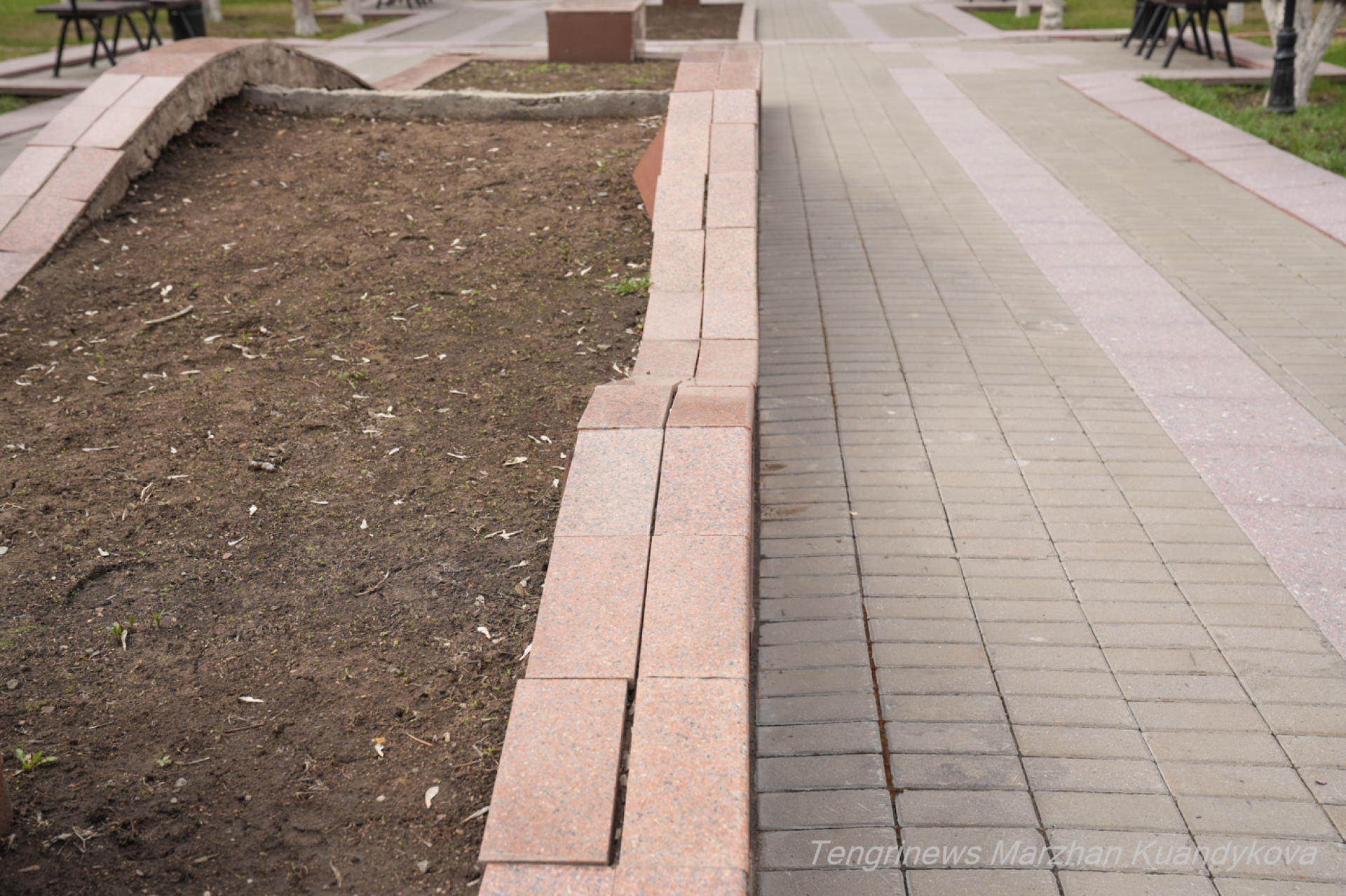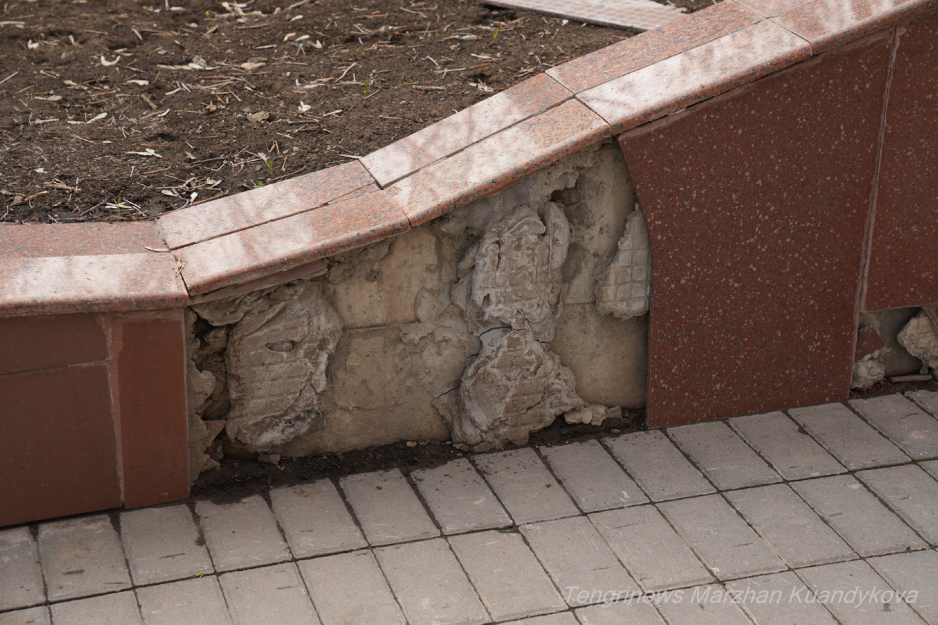 Разбитая плитка и торчащие провода - как выглядит аллея в центре Астаны Фото: © Tengrinews.kz / Маржан Куандыкова