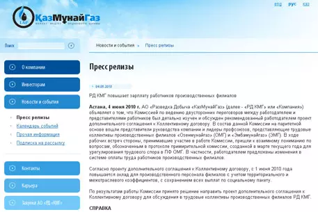 "Компания объявляет о том, что комиссией по ведению двусторонних переговоров между работодателем и представителями работников был детально изучен и обсужден рекомендованный работодателем проект дополнительного соглашения к коллективному договору", - говорится в сообщении. По данным пресс-службы, с 1 июня 2010 года повышается оклад для работников филиалов с учетом территориального и межотраслевого коэффициентов, а также с сохранением всех выплат по соцпакету.