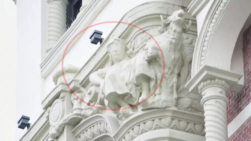 Голову пастушки на фасаде одного из офисных зданий они превратили в нечто, похожее на картофелину. На неудачную реставрацию первым обратил внимание местный житель. А в Интернете шутники сразу окрестили это произведение "мультяшной головой".
