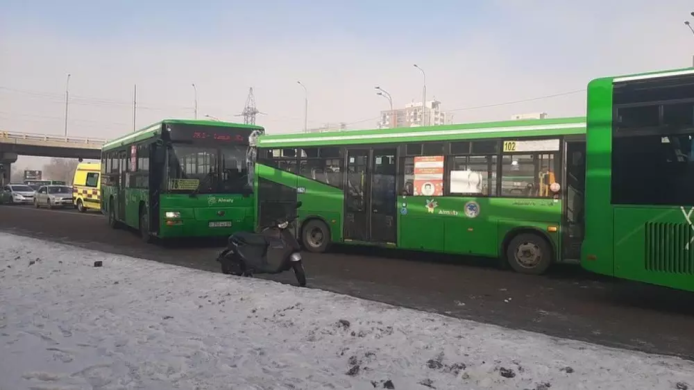 По данным Департамента полиции Алматы, водитель автобуса марки YUTONG BUS следовал по проспекту Райымбека в восточном направлении. Из-за несоблюдения дистанции он допустил столкновение с движущимся впереди автобусом марки SAZ. От удара автобус марки SAZ по инерции допустил столкновение с третьим автобусом марки YUTONG, который двигался в попутном направлении.